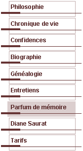 Installé à Grasse, Ad Vitâme est imprégné de l’essence même de sa ville: les parfums. L’Homme d’aujourd’hui met souvent ses sens en sommeil. Pourtant, nos sens sont notre vie et inscrivent en nous de nombreuses sensations et émotions. La mémoire olfactive est la plus profonde et la plus puissante de nos mémoires. Sentir, c’est se souvenir... A travers des odeurs évocatrices, Diane vous aidera à stimuler des souvenirs parfois enfouis, comme autant de madeleine de Proust: petits-déjeuners d’enfance, vacances en bord de mer, promenade à travers champs…. Laissez vous transporter par les effluves à remonter le temps. |